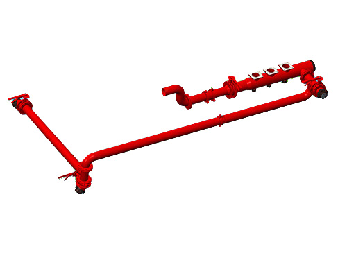 壓井管匯是油氣井壓力控制設(shè)備中的一個(gè)重要組成部分。它的作用是:當(dāng)不能通過(guò)鉆柱正常循環(huán)時(shí),可通過(guò)壓井管匯向井中泵入鉆井液,達(dá)到控制井壓的目的。壓井管匯的一端與鉆井四通側(cè)孔相連,一端和鉆井泥漿泵相連。